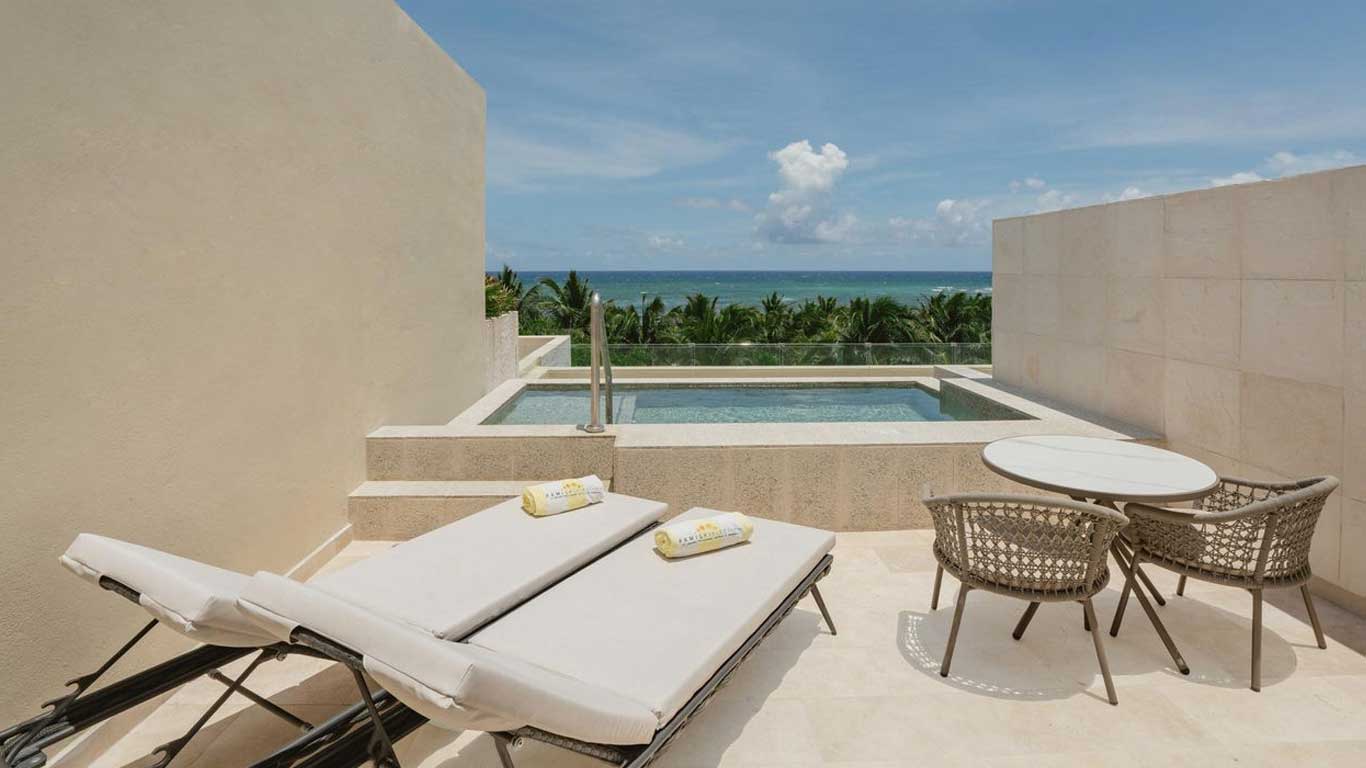 Family Selection Junior Suite Swim Up – Grand Palladium Kantenah Resort & Spa are spacious, light-filled suites are designed across two levels, featuring a private pool and a furnished terrace on the upper floor—perfect for families who want both comfort and privacy. Inside, you’ll find a connected living room with a sofa bed and all the exclusive amenities of the Junior Suite category. The suite is available with either one king bed or two double beds, and we’ll do our best to accommodate your preference.